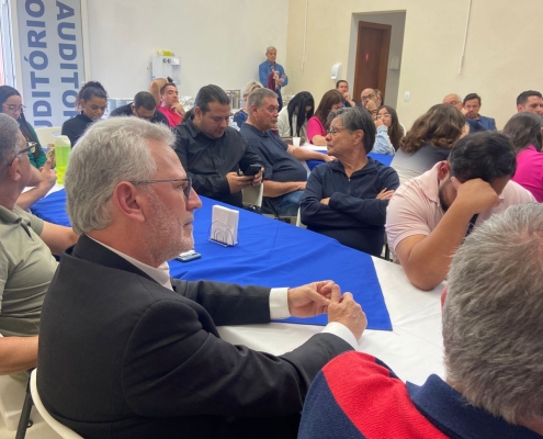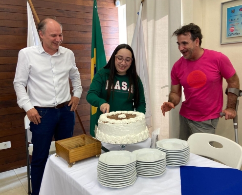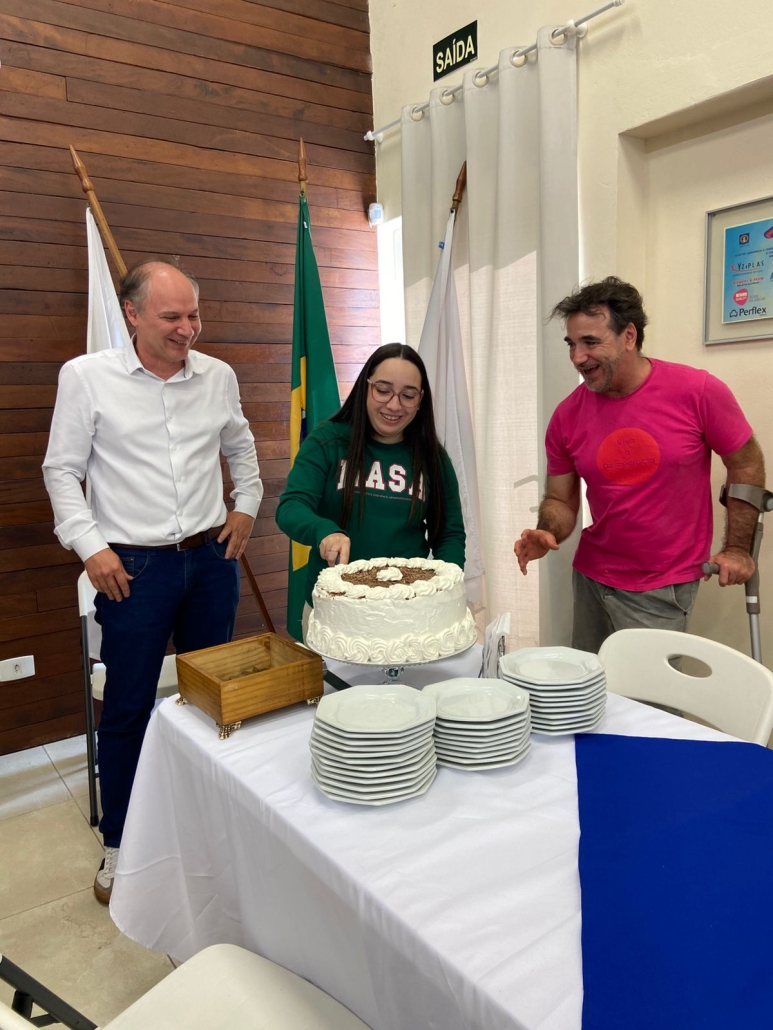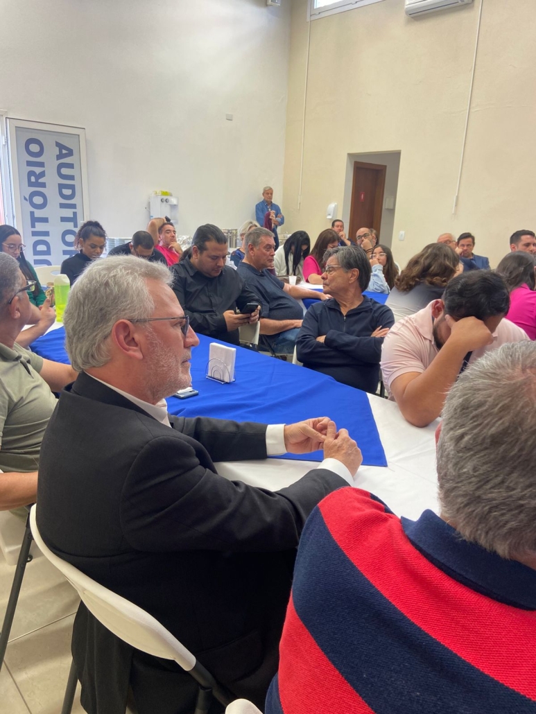 Após a palestra, os convidados desfrutaram de um delicioso almoço, seguido da celebração dos aniversariantes do mês com parabéns e um momento de confraternização.