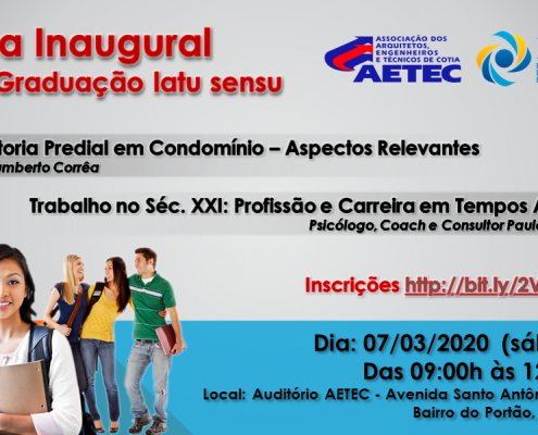 AETEC2020-03-11 10:20:072020-03-13 14:20:05AETEC/FIP – Aula Inaugural Cursos de Pós-Graduação latu sensu